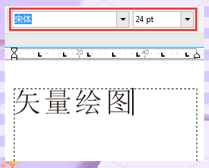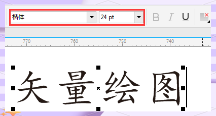 - 在绘图页面使用文本工具输入文字时,会默认采用您之前所设置的字体,例如“楷体”和字号40,效果如图所示。