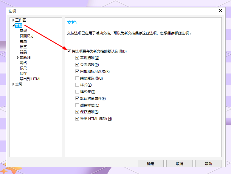 - 为了确保在后续打开软件时,输入美术字或段落文本时能够默认采用之前设置的字体,您可以按照以下步骤进行操作:首先,选择菜单栏中的“工具”选项,并点击下拉菜单中的“选项”(或使用快捷键Ctrl+J)。接着,在弹出的“选项”对话框中,找到并展开左侧栏的“文档”类型列表。然后,在面板右侧勾选“将选项保存为新文档的默认值”选项。最后,点击“确定”按钮即可完成设置。