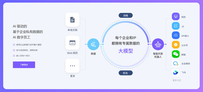 多终端发布渠道:满足多种业务场景,为您服务各渠道客户。包括网页、微信群、JS 嵌入网页、接入API,更多发布形式持续升级中。