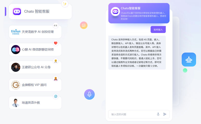 Chato 可以设定角色和学习自己的知识库, 定制独特个性和超强能力的专属机器人。